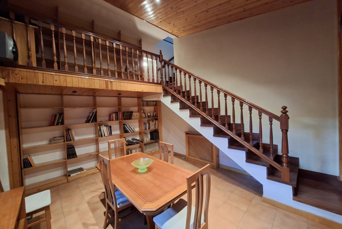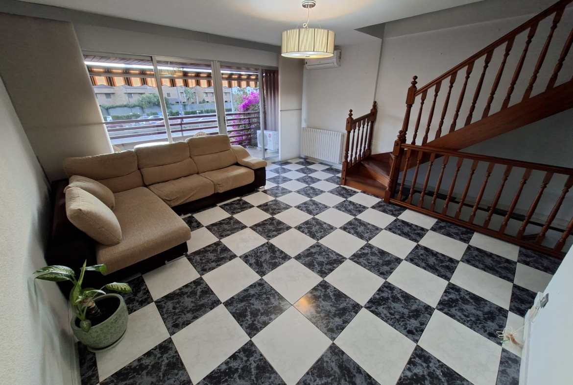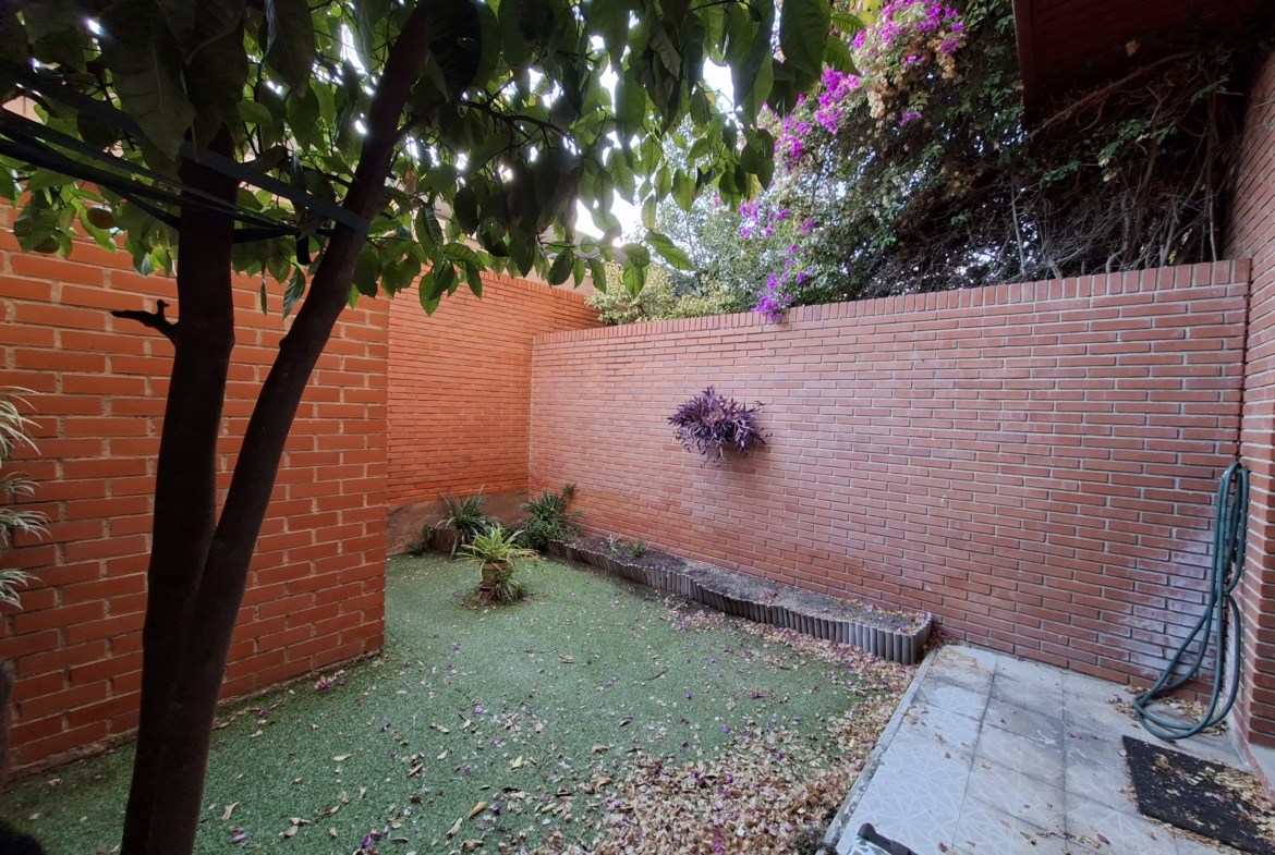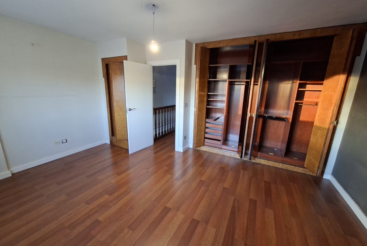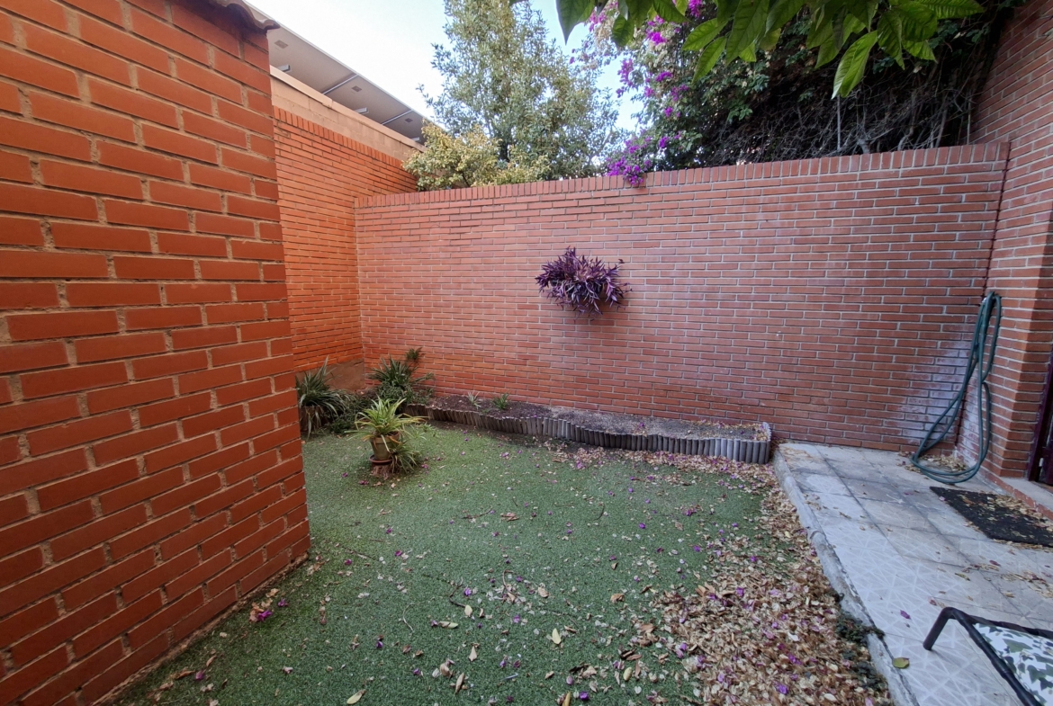 IMPRESIONANTE VIVIENDA TIPO TRIPLEX CON JARDIN Y  DOS PLAZAS DE GARAJE. Vivienda originariamente de 4 dormitorios, reformada en la actualidad en amplísimos dormitorios. En la planta de acceso, encontramos un gran salón con cristaleras de pared a pared, de acceso a la terraza principal; aseo de cortesía con ventana y cocina con ventana y puerta de salida a una considerable galería, donde puede alojarse la zona de lavandería. En la planta superior, de origen había 4 dormitorios y tras la reforma hay dos enormes, con multitud de armarios empotrados y entre ambos cuarto de baño completo también reformado. Por último, en la planta baja, accediendo desde el salón mediante la escalera, otro espacio para uso que cada uno necesite: otro inmenso dormitorio, biblioteca, bodega, sala de juegos, que dispone de acceso al jardín, supersoleado porque la vivienda está orientada al sur, lo que facilita su uso todo el año. En el jardín, un cuarto de aperos o trastero, para todo aquello que no utilices diariamente. Además, el precio incluye dos plazas de garaje. Con zona deportiva y piscina en la urbanización Torres de San Lamberto. Autobús en la puerta. Fácil acceso al centro de la ciudad.