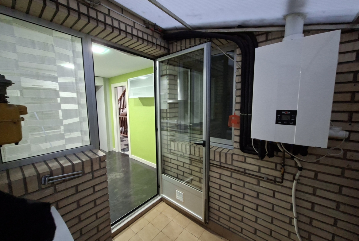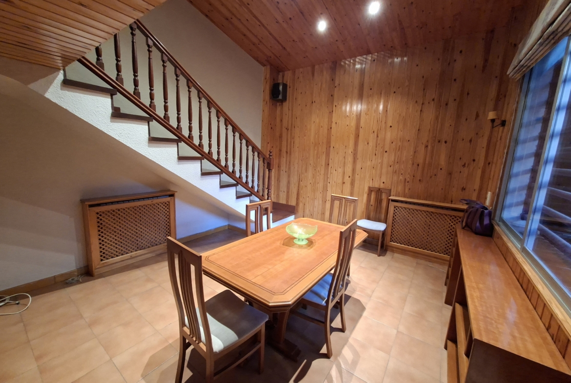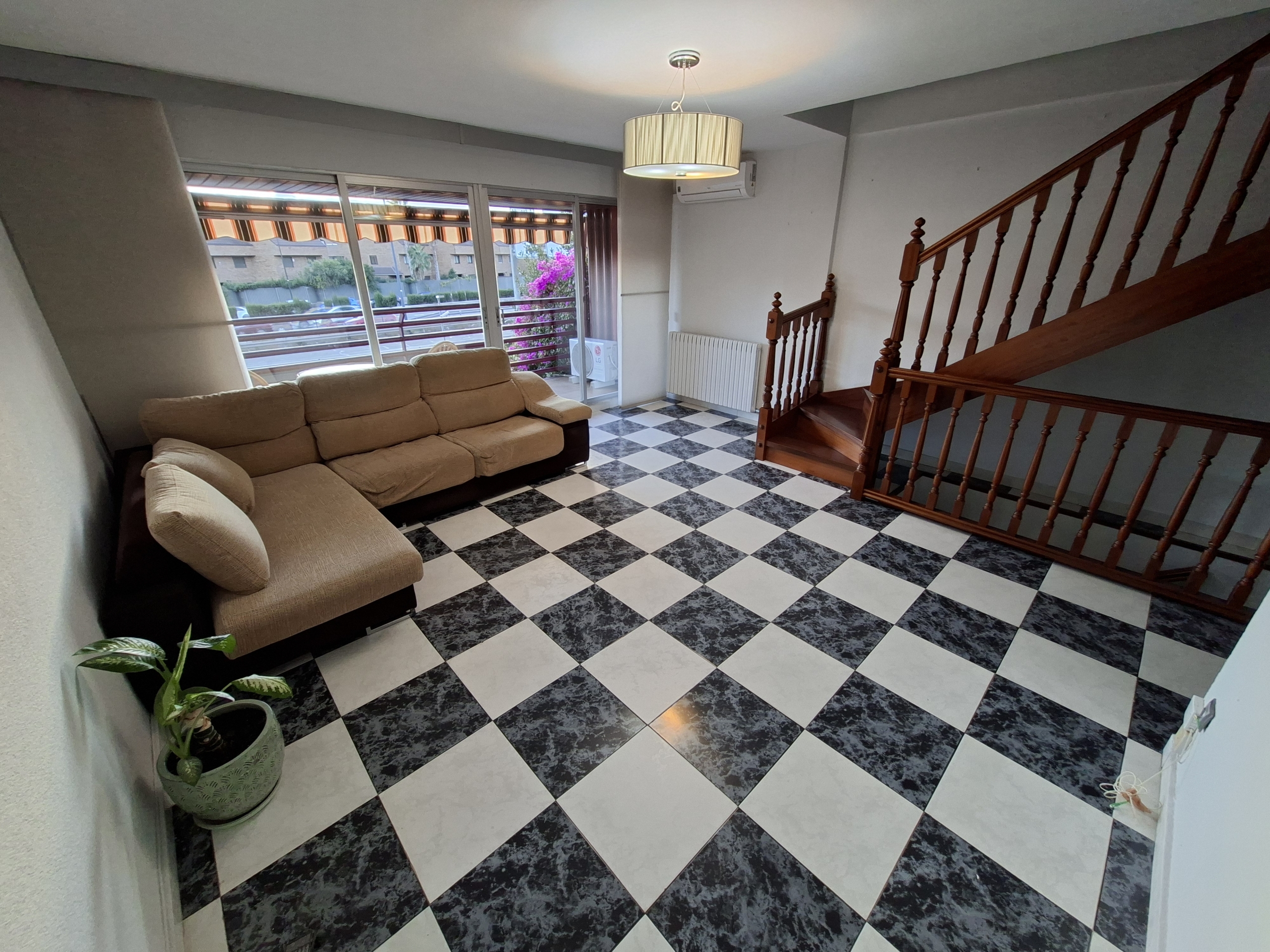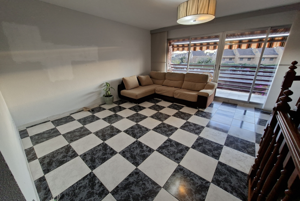 IMPRESIONANTE VIVIENDA TIPO TRIPLEX CON JARDIN Y  DOS PLAZAS DE GARAJE. Vivienda originariamente de 4 dormitorios, reformada en la actualidad en amplísimos dormitorios. En la planta de acceso, encontramos un gran salón con cristaleras de pared a pared, de acceso a la terraza principal; aseo de cortesía con ventana y cocina con ventana y puerta de salida a una considerable galería, donde puede alojarse la zona de lavandería. En la planta superior, de origen había 4 dormitorios y tras la reforma hay dos enormes, con multitud de armarios empotrados y entre ambos cuarto de baño completo también reformado. Por último, en la planta baja, accediendo desde el salón mediante la escalera, otro espacio para uso que cada uno necesite: otro inmenso dormitorio, biblioteca, bodega, sala de juegos, que dispone de acceso al jardín, supersoleado porque la vivienda está orientada al sur, lo que facilita su uso todo el año. En el jardín, un cuarto de aperos o trastero, para todo aquello que no utilices diariamente. Además, el precio incluye dos plazas de garaje. Con zona deportiva y piscina en la urbanización Torres de San Lamberto. Autobús en la puerta. Fácil acceso al centro de la ciudad.